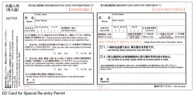 ED Card for Special Re-entry Permit
